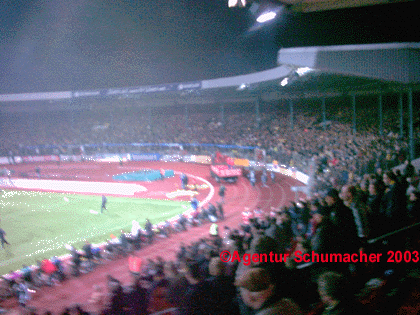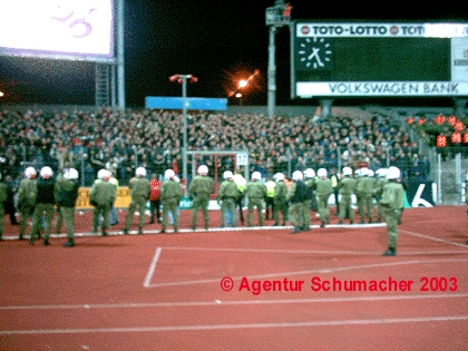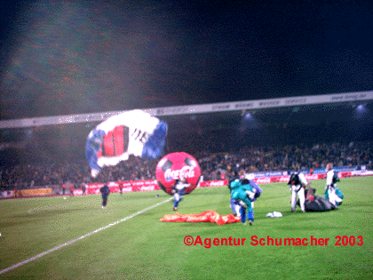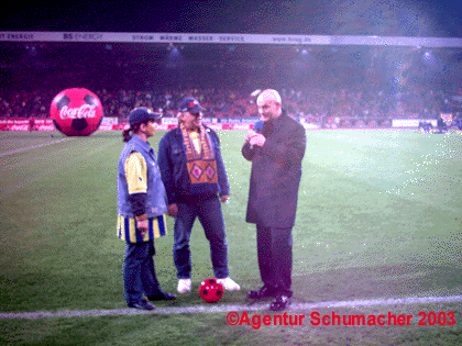 23.000 Zuschauer erlebten einen begeisternden Abend - eine Liebeserklärung vor dem Spiel, das Spielgerät wurde punktgenau trotz Nebel und Regen durch Fallschirmspringer gebracht, eine Riesenchoreographie zum Spielbeginn, ein starkes Transparent quer über die Gegengerade zur 2. Halbzeit "96-Fans - ein Kind hält Euch zum Narren" (der Spass kostete 5.000 €), eine gute Schiedsrichterleistung sowie durch Thomas und Rische 2 historische Tore. Da standen nach Spielschluss nicht nur Eintracht-Präsident Glogowski Tränen der Freude in den Augen... . Schade nur, dass die Braunschweiger Verkehrs AG den Schaden an den durch die 96-"Fans" demolierten Bussen in Höhe von über 50.000 Euro selbst tragen muss.