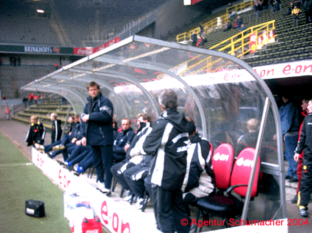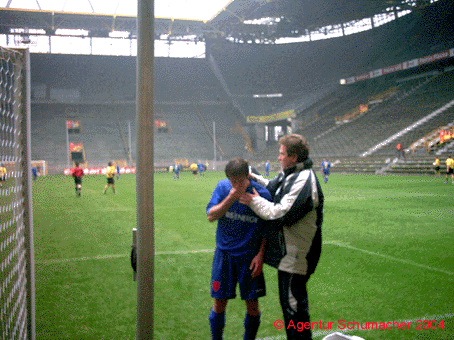 von Trainer Krüger aus der Kabine. Arnold, an alter Wirkungsstätte, versuchte