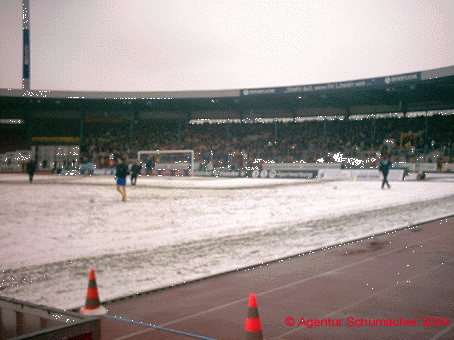 Schneefall von 11 bis 13 Uhr in Braunschweig, 8.500 Zuschauer sorgten dennoch