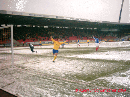 2:0 nach 53 Minuten durch einen Kopfball durch Kapitän Jürgen Rische nach 53 Minuten nach
