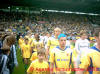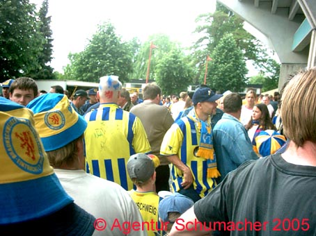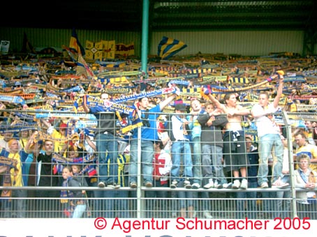 blau-gelbe Fangemeinde und die Elf von Trainer Krüger : eine Hereingabe von