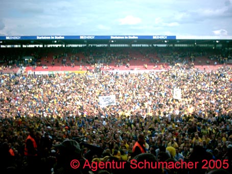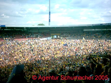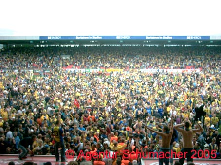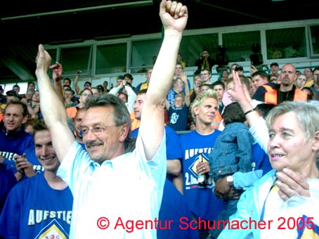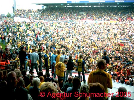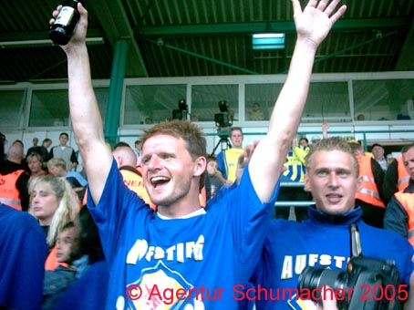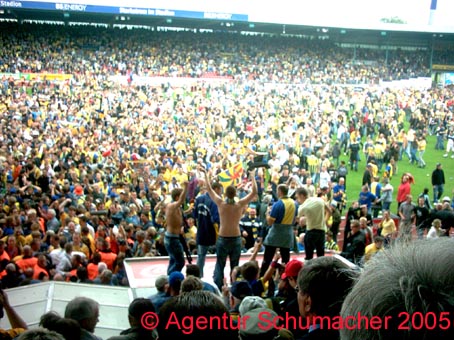 und die Aufstiegsfeier nahm Konturen an : über 20.000 stürmten das Spielfeld und