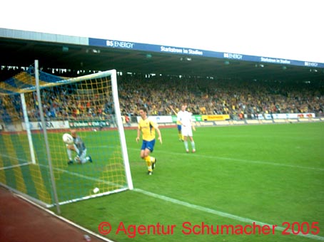 Braunschweiger Eintrachtstadion, da touchiert ein ein 20 Meterschuss des