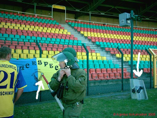 Provokativ dann das Auftreten der Berliner Polizei bei Spielende :