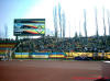 durch mehrere leere Böcke zur Haupttribüne in der Kurve unter der Anzeigentafel.