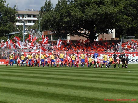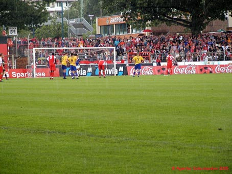 in Cottbus zum Saisonauftakt der 2. Fussball-Bundesliga. Ein gewohnt stürmischer