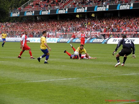 kurzer Distanz unbedrängt zum 2:1 für Cottbus einschiessen kann. Bitter für die